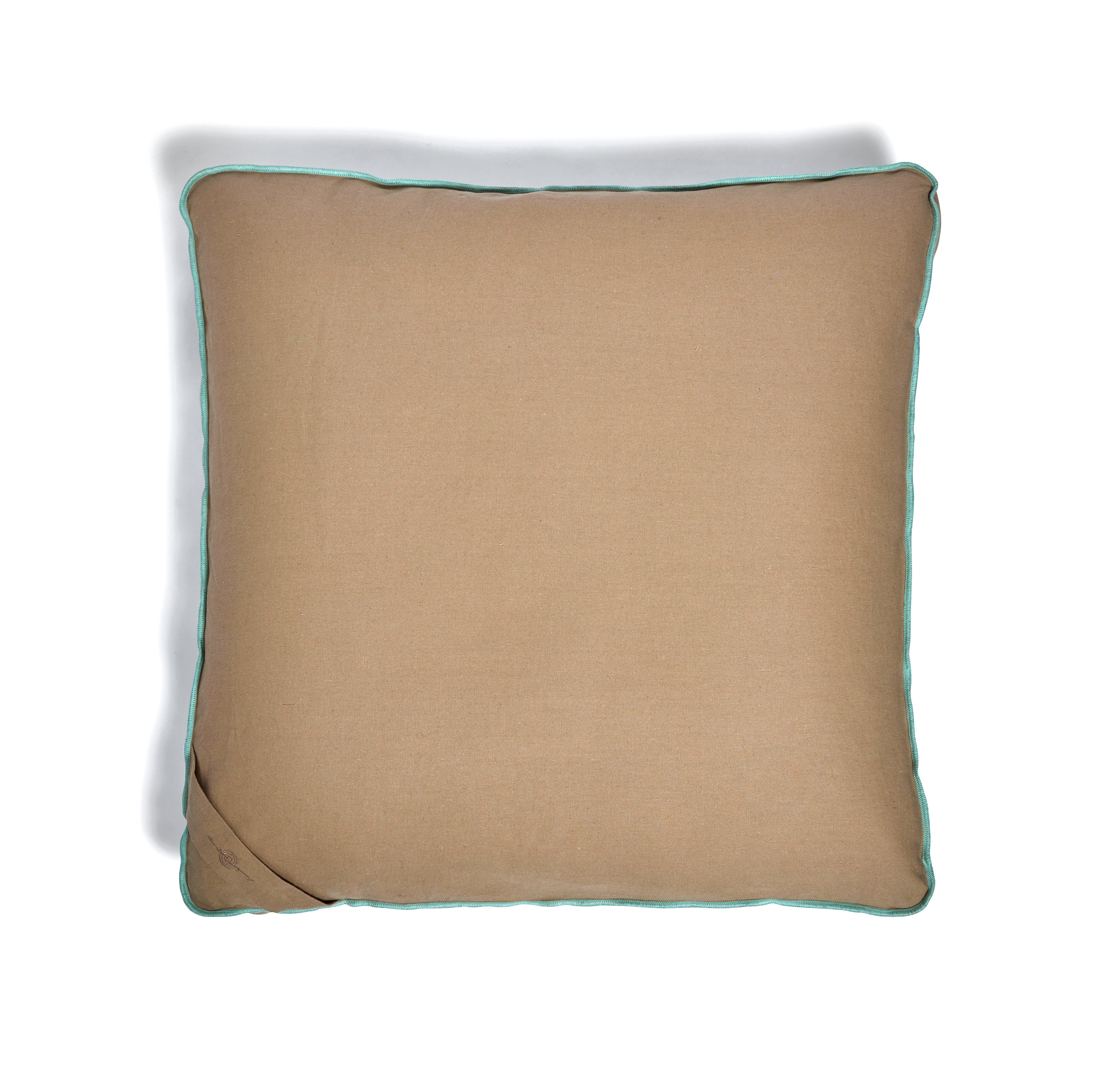 Pictured here in earth | rich brown with mint green trim, this grounding color palette brings us back to earth and all the richness, life and healing that terra firma offers. Each and every color is custom dyed to please the eye and bring calm to your home.